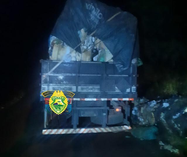 Um acidente envolvendo dois caminhões na noite de ontem, 10 de junho, por volta das 21h00, na PR-455, km 33, em Londrina, ocasionou o derramamento de parte da carga de reciclagem de um dos veículos sobre a pista. Felizmente, os motoristas dos dois caminhões, M. S. M., de 38 anos, e E. M. P., de 21 anos, não sofreram ferimentos.