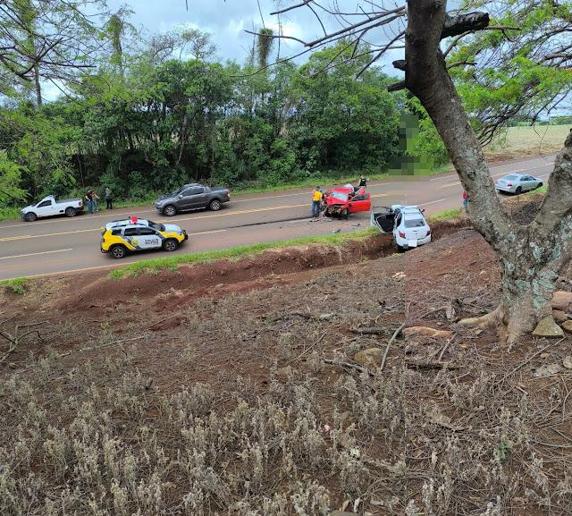 De acordo com a Polícia Rodoviária Estadual (PMPR/CPE/BPRv/2ª Cia/PRv – Ubá do Sul), o GM/Prisma seguia no sentido Manoel Ribas – Ivaiporã quando colidiu frontalmente com a VW/Saveiro que trafegava no sentido contrário. No Prisma, estavam a condutora T.S.B., de 33 anos, e a passageira A.M.S.B., de 61 anos, ambos com ferimentos e encaminhados ao Hospital Bom Jesus de Ivaiporã.