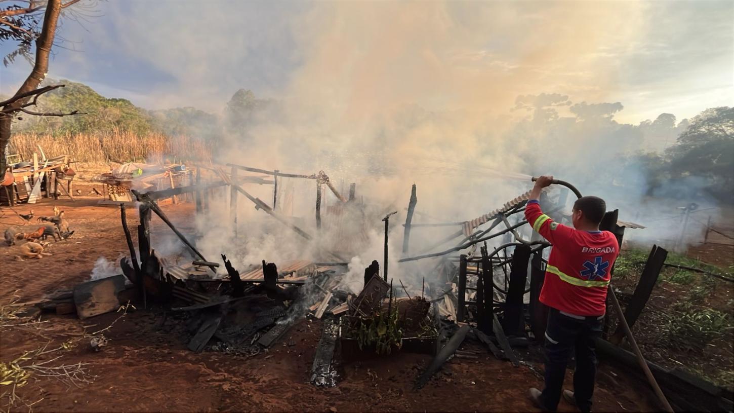 A Brigada Municipal, com os agentes Manoel e João Bernini, foi acionada e agiu no combate às chamas. Apesar dos esforços para conter o fogo, a residência ficou totalmente destruída.