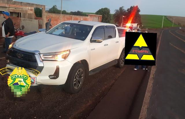 De acordo com o boletim da PRE, uma motocicleta Honda CG Titan, conduzida por C.C., de 39 anos, seguia no sentido Lunardelli–Jardim Alegre quando foi atingida na traseira por uma caminhonete Toyota Hilux, dirigida por R.B.F., de 38 anos, que trafegava à frente na mesma direção.