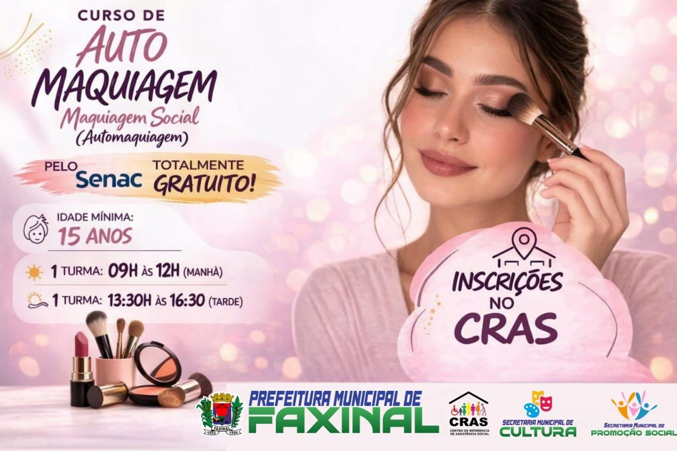 O curso de automaquiagem, oferecido de forma totalmente gratuita pela Prefeitura Municipal de Faxinal, do Centro de Referência de Assistência Social (CRAS), da Secretaria Municipal de Promoção Social e da Secretaria Municipal de Cultura e ministrado pela experiente professora Flávia Siqueira, chegou ao fim nesta sexta-feira, 20 de março. A iniciativa beneficiou 22 alunas, divididas em dois períodos – matutino e vespertino –, promovendo capacitação prática e acessível para mulheres da região.