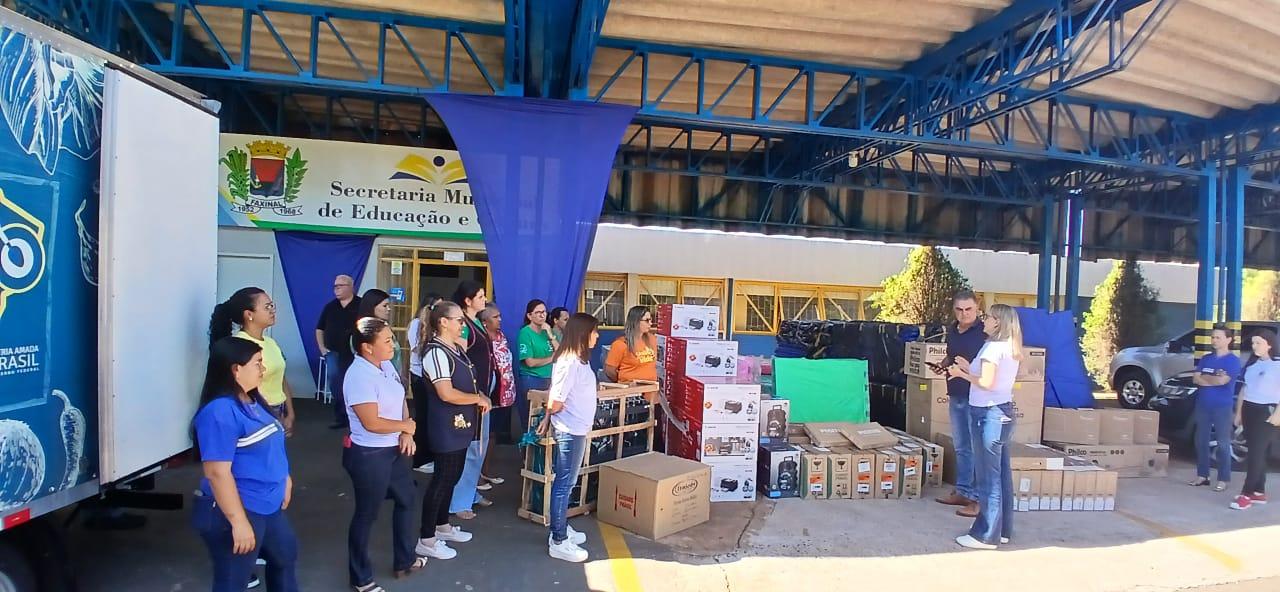 A rede municipal de ensino de Faxinal recebeu um grande investimento nesta segunda-feira, 25. O prefeito Ylson Álvaro Cantagallo e a secretária de Educação, Angela Vanessa Tarosso Scaff, realizaram a entrega de diversos equipamentos e eletrodomésticos para escolas, CMEIs e creches. A iniciativa visa modernizar as unidades escolares e proporcionar um ambiente de ensino mais completo e eficiente para alunos e professores.