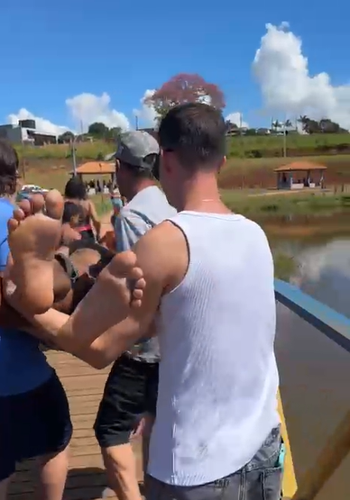Testemunhas relataram que uma mulher, que estava próxima à ponte, não hesitou e mergulhou na água para resgatar o homem. Com esforço, ela o arrastou até a margem. Dois pilotos de jet ski, que passavam pelo local, aproximaram-se imediatamente para auxiliar na operação, ajudando a retirar a vítima da água com segurança. Enquanto isso, outros banhistas se mobilizaram para prestar os primeiros atendimentos, como verificação de respiração e estabilização, até a chegada das equipes especializadas.