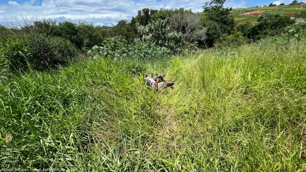 O furto ocorreu em frente à residência da vítima, no município de Faxinal, na semana passada. Após diligências, os agentes localizaram o veículo escondido em um matagal próximo ao trevo Weckerlin, em um acesso secundário à cidade. A área, de difícil visibilidade e acesso, é frequentemente utilizada por criminosos para ocultar bens furtados, o que demonstra a eficiência das buscas policiais.